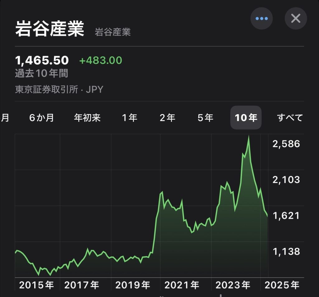 政府の「グリーン成長戦略」により水素インフラ整備が推進され、燃料電池車(FCV)の普及や補助金拡大が業績成長への期待を高めた。さらに、ESG投資の拡大や世界的な水素市場の発展も追い風となり、岩谷産業は脱炭素社会の鍵を握る企業として評価されたことが、株価上昇の大きな要因となったというわけだ。